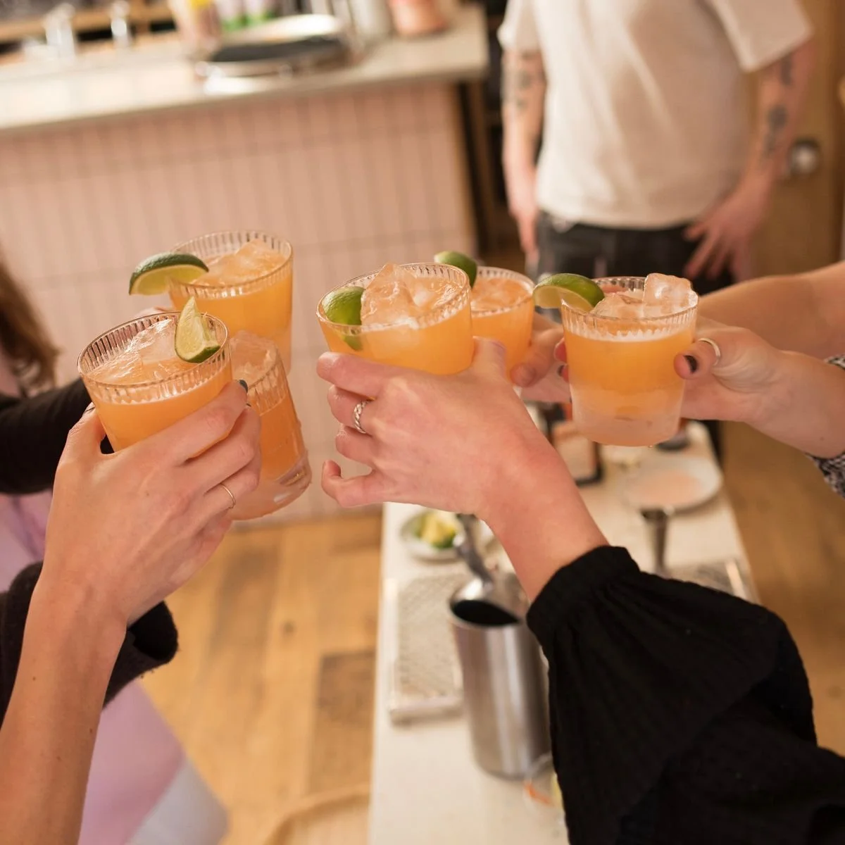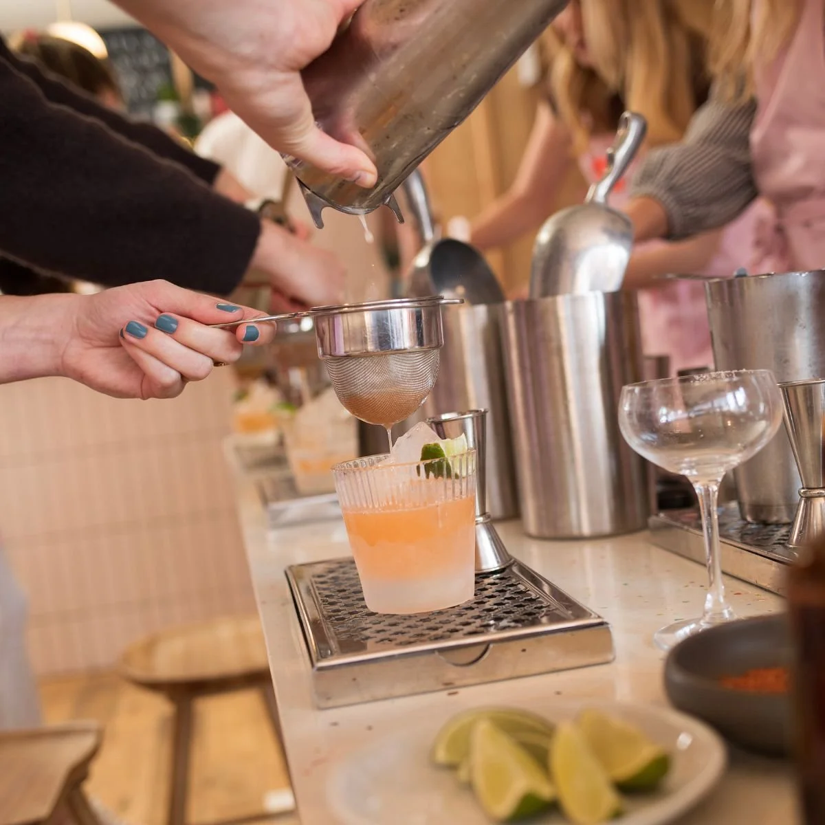 You’ll be welcomed with a glass of prosecco, make three cocktails with our team, and pick up a few tricks you can take home with you.